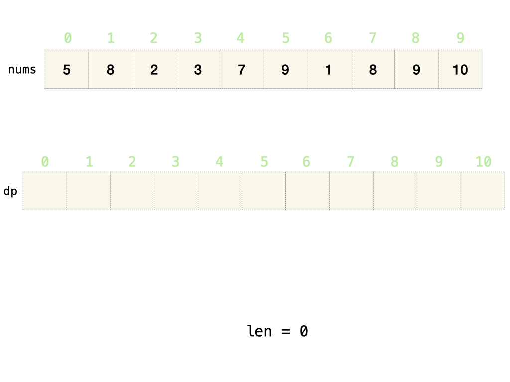 | DP + Binary Search | O(n log n) | O(n) | dp[k] = smallest ending value for length k |