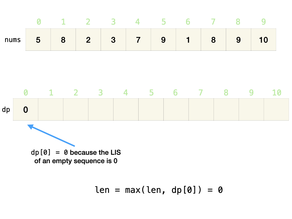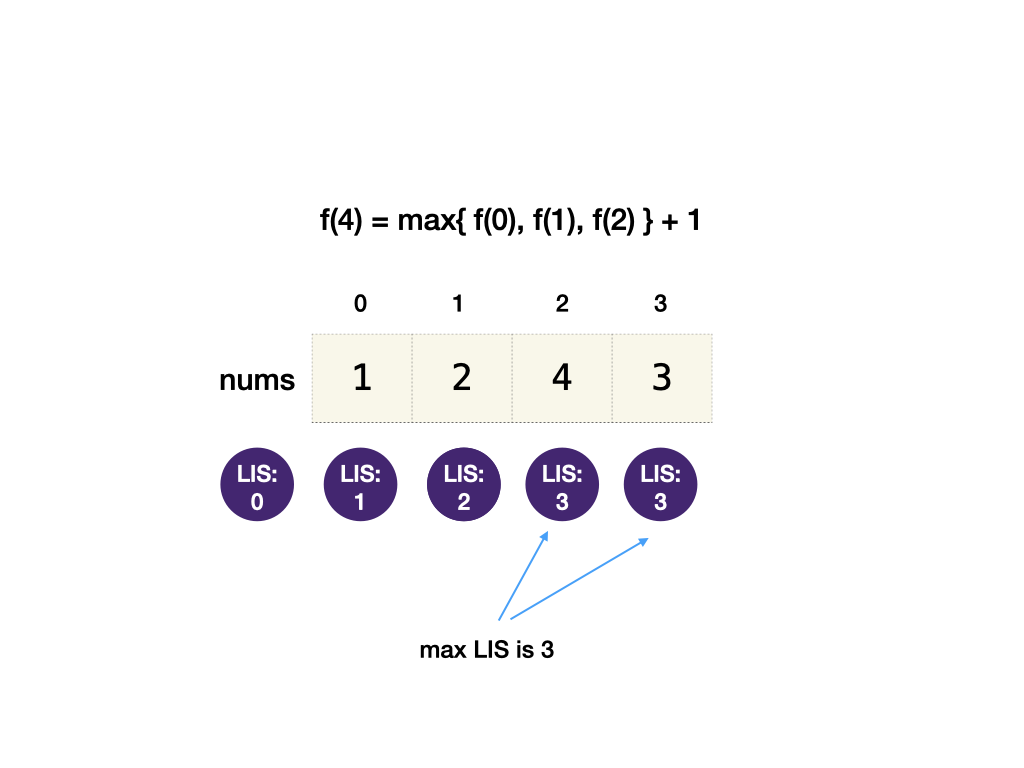 nums = [50, 3, 10, 7, 40, 80] LIS = [3, 7, 40, 80], length = 4